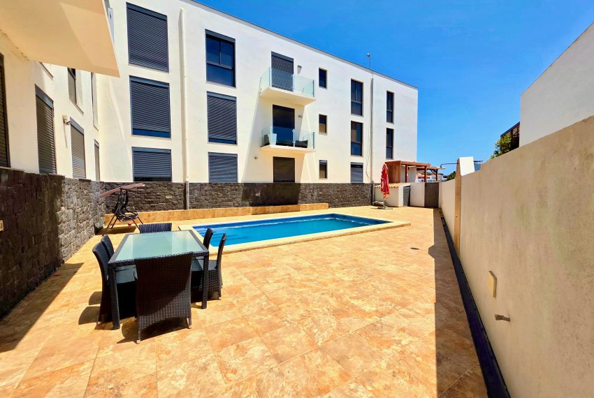 Vende-se apartamento T3, com as seguintes características: Área exterior com barbecuer; Sala ampla com ar condicionado; Cozinha equipado, com fogão, forno, exaustor, frigorifico e micro-ondas Área de serviço com termoacomulador e pré-instalação para máquina de lavar roupa; Uma dispensa; Uma suite com roupeiros e ar condicionado; Dois quarto com roupeiro e ar condicionado uma Casas de banho. OBS – condomínio com piscina, estacionamento no exterior Características: • AC • Exaustor • Fogão e Forno • Frigorífico • Guarda Roupa • Intercomunicador • Microonda • Termoacumulador