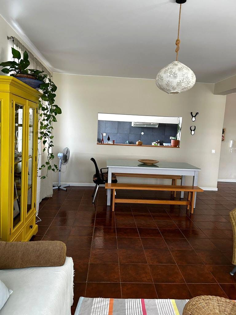 Arrenda-se apartamento T2 no meio de achada Santo António, bem localizado perto de escola Francês, com muita luz natural!!, composto por: Sala comum ampla; Cozinha com fogão, forno e exaustor; Uma suite com roupeiro; Um quarto com roupeiro; Uma casa de banho OBS: Pode ser Mobilado no valor de 80.000$. Características: • AC • Antena parabólica • Exaustor • Fogão e Forno • Guarda Roupa • Intercomunicador • Termoacumulador