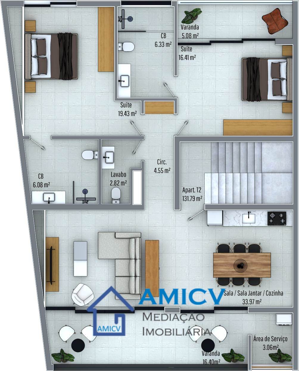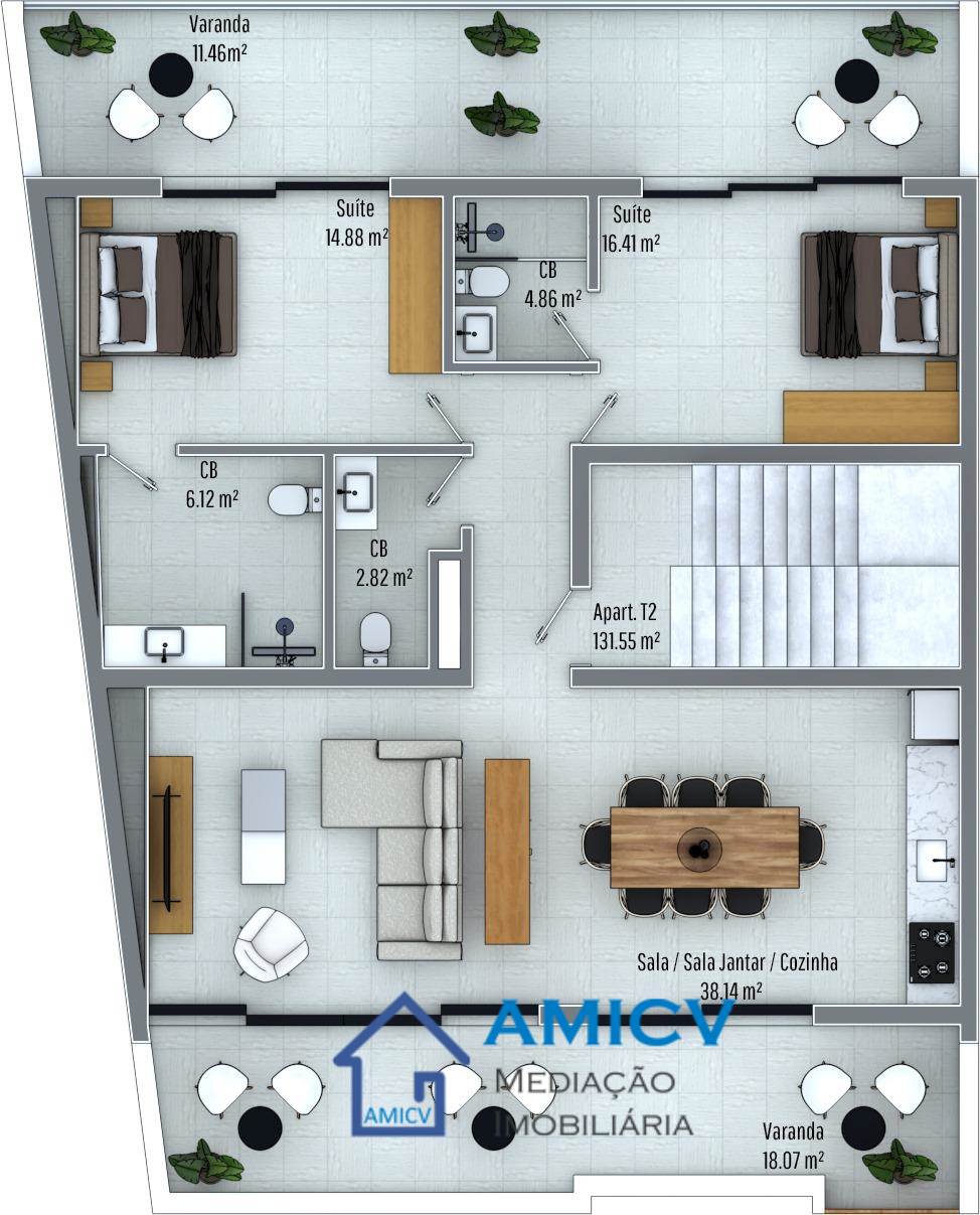 AMICV, Agência Imobiliária em Cabo Verde, apresenta em exclusiva estes apartamentos T2 amplos, com possibilidade de garagem, na zona de Chà de Alecrim. O predio com 4 andares e uma cave está em construção. Cada andar tem um único apartamento T2 com áreas generosas de 92,86 m² ou 131,79 m² e quartos amplos e iluminados. Os apartamentos são constitudos por: 1° PISO | T2 com 77 m² . Cozinha equipada open space com sala de jantar e sala de estar . 1 suite com casa de banho privativa . 2 casas de banho, sendo uma privativa 2° – 3° – 4° PISO | T2 com 131,79 m² + 2 varandas . Ampla cozinha equipada open space com sala de jantar e sala de estar . 2 suite com casas de banho privativas . 3 casas de banho, sendo 2 privativas Possibilidade de garagem. CAVE | Cada garagem tem uma entrada independente e uma casa de banho com sanita e lavabo. Os diferentes tamanhos permitem desfrutar da melhor forma deste espaço. Garagem 1 com 76,98 m² e garagem 2 com 24,87 m². Possibilidade de venda conjunta. 1° PISO | T2 com 77 m² : €100.000 | CVE11.026.500 2° PISO | T2 com 131,79 m²: VENDIDO 3° PISO | T2 com 131,79 m²: VENDIDO 4° PISO | T2 com 131,79 m²: RESERVADO CAVE | Garagem 1 com 76,98 m²:RESERVADO Garagem 2 com 24,87 m²: VENDIDO