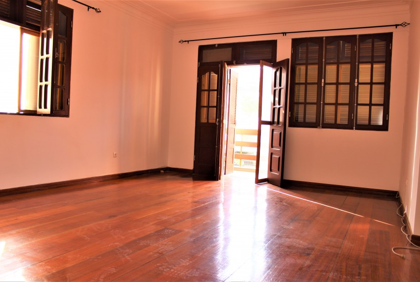Arrenda-se T4 com muita luz na Praínha. Situado em uma zona tranquila e segura. Imóvel composto por: Hall de entrada; Sala Comum (Com varanda); Cozinha equipada com exaustor e termoacumulador; Área de serviço; 3 quartos com Guarda Roupa (Uma das quais com varanda); 1 Suite com guarda roupa; OBS: Prédio com segurança. Características: • Exaustor • Guarda Roupa • Termoacumulador • Varanda