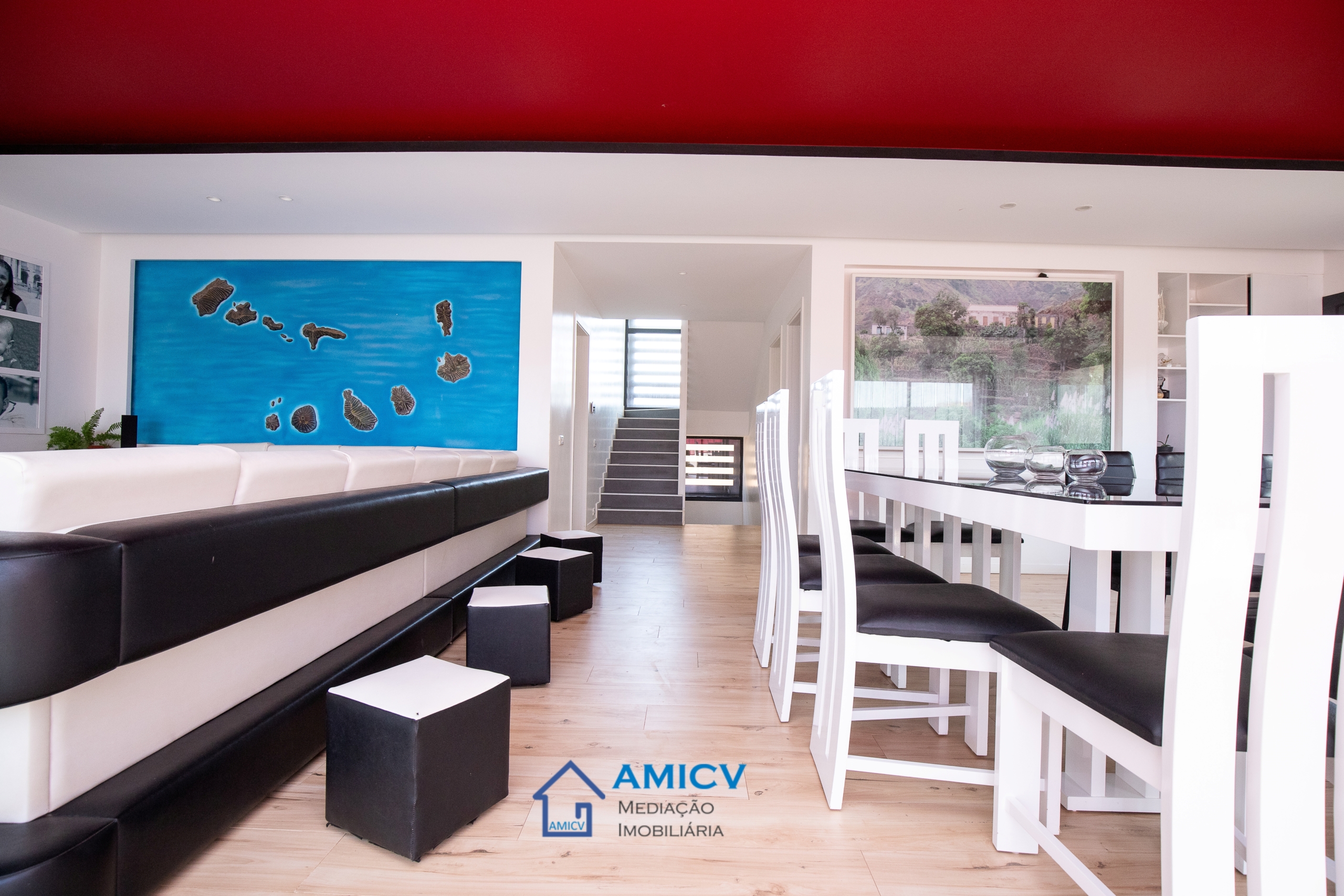 AMICV, Agência Imobiliária em Cabo Verde, apresenta em exclusiva esta excelente mansão T5, situada em Ribeira de Vinha. A mansão, com 500m2, é construída de pedra e blocos, coberta de betão armado. . sala de jogos saguão . sala de ginásio fitness . sala de estar e sala de visita integrada .uma casa de banho . pequeno campo para jogar futbol . 1 suite com casa de banho privativa . 2 casas de banho, sendo uma privativa . terraço com vista Preço: CVE48.000.000 | €435.315