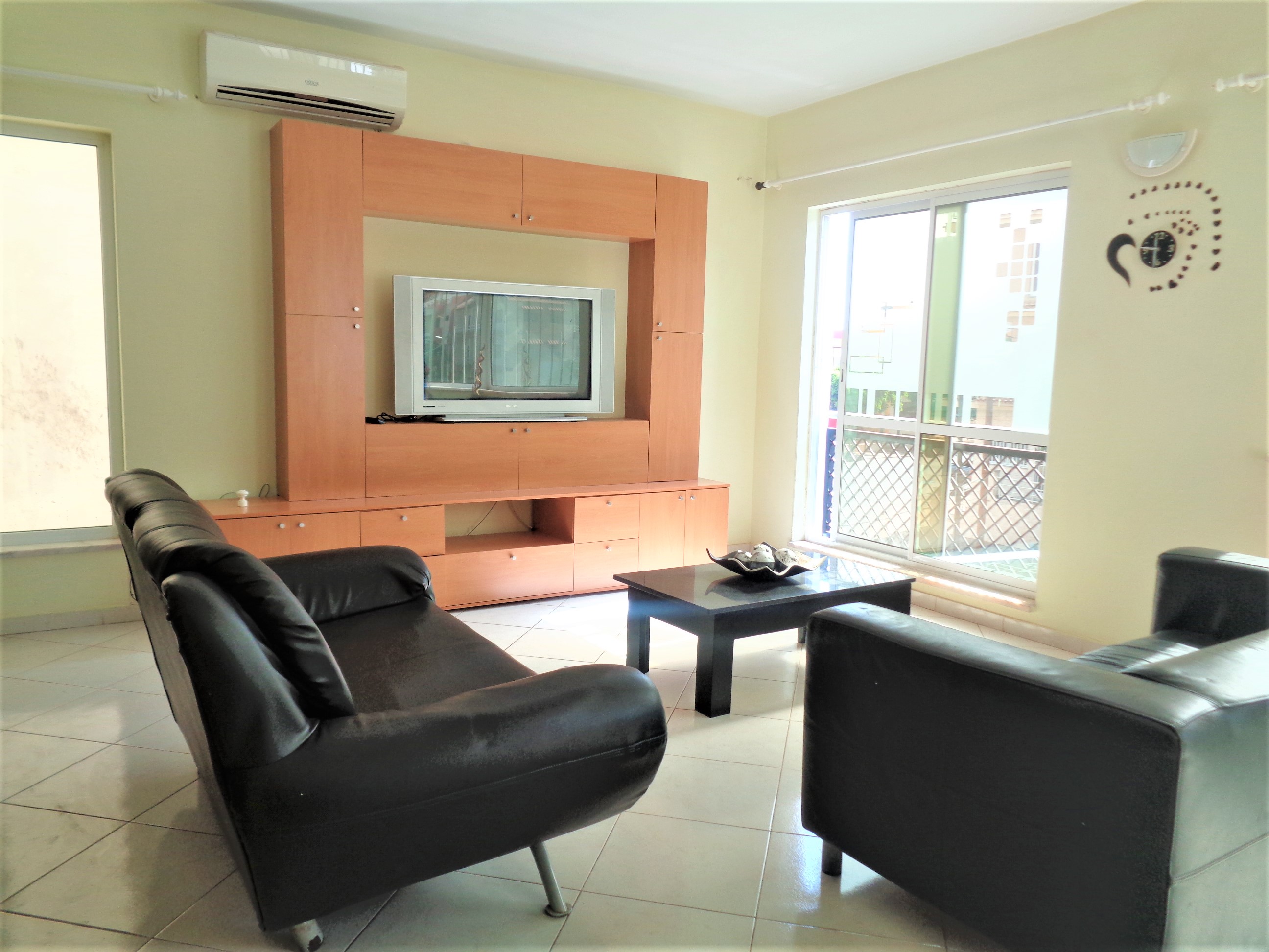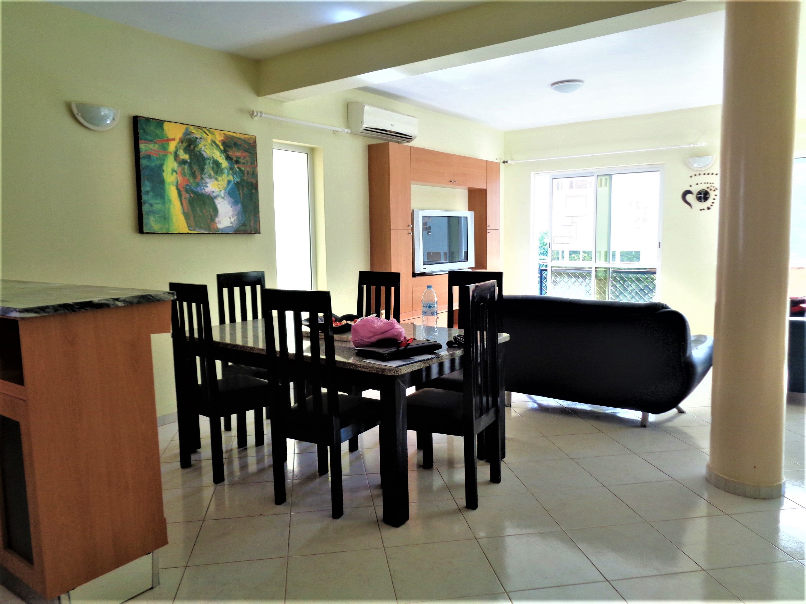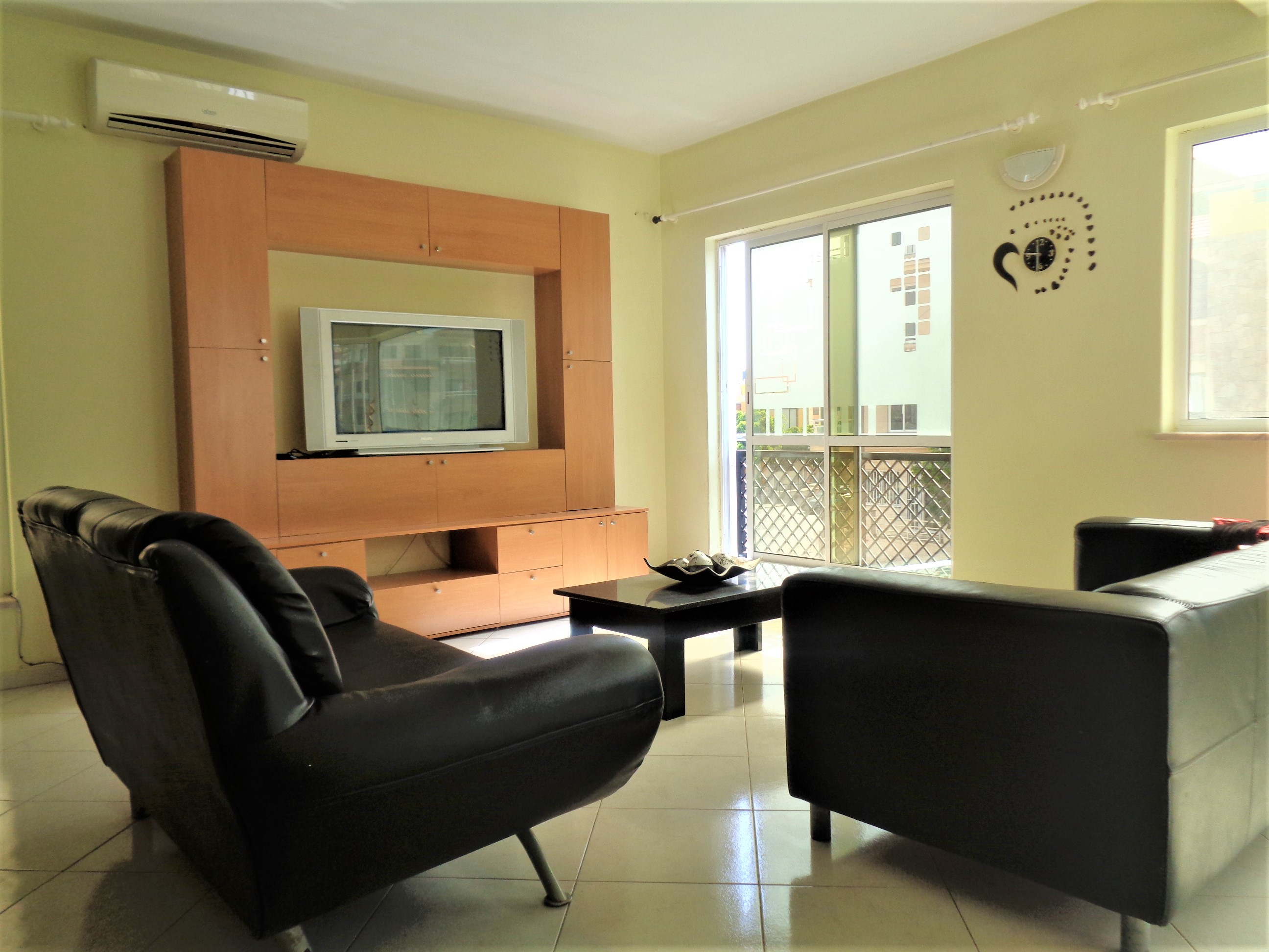 Arrenda-se um apartamento T2 mobilado em Palmarejo com as seguintes características: Uma sala ampla, dois quartos sendo um suite, uma casa de banho e uma cozinha equipada. Características: • AC • Exaustor • Fogão e Forno • Frigorífico • Guarda Roupa • Intercomunicador • Microonda • Mobilado • Televisão