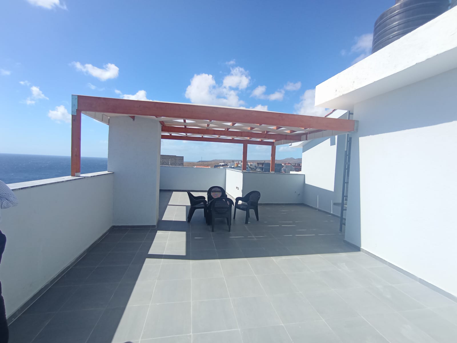 Vende-se apartamento T3 em Cidadela, com muita luz natural e um deslumbrante vista para o mar. O apartamento é composto por: Sala de estar; Cozinha equipada; 1 Quarto Suíte; 2 Quartos comuns 1Casa de banho; 1 Circulação; 2 Varandas. Pré instalação de máquina de lavar roupa; Vidros duplos em todas as portas e janelas; Terraço comum com churrasqueira, lava loiça e casa de banho; OBS: O apartamento fica no 2º andar e tem ar condicionado em todos os compartimentos. Características: • AC • Bancada em Pedra (Cozinha) • Elevador • Exaustor • Fogão e Forno • Guarda Roupa • Intercomunicador • Microondas • Porta Blindada • Tecto Falso • Termoacumulador • Terraço • Varanda • Vidros Duplos