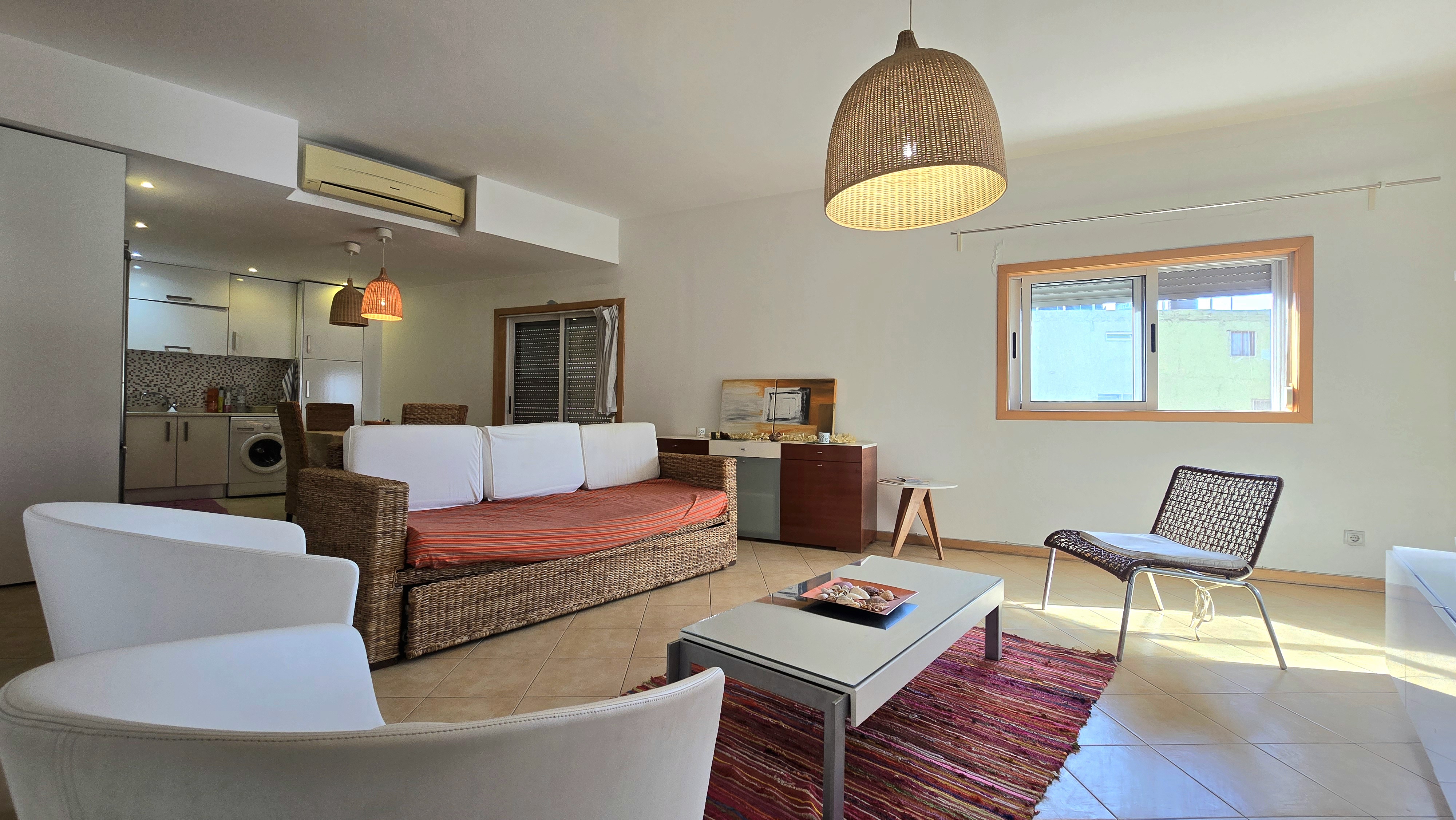 Vende-se apartamento T2 na Av. Cidade Lisboa, composto por: Sala Comum Hall de circulação Cozinha equipada ( fogão, forno, exaustor, maquina de lavar ) Dispensa Suíte com AC 1 Quarto 1 WC Características: • AC • Bancada em Pedra (Cozinha) • Exaustor • Fogão e Forno • Frigorífico • Guarda Roupa • Intercomunicador • Maquina de Lavar Roupas • Microonda • Mobilado • Televisão • Termoacumulador