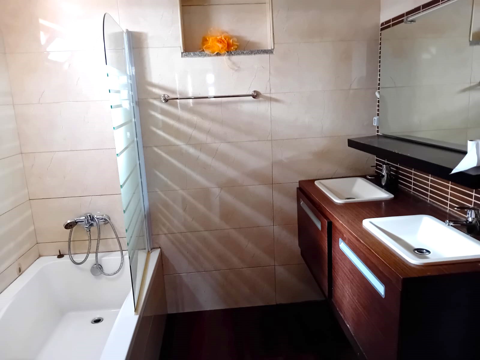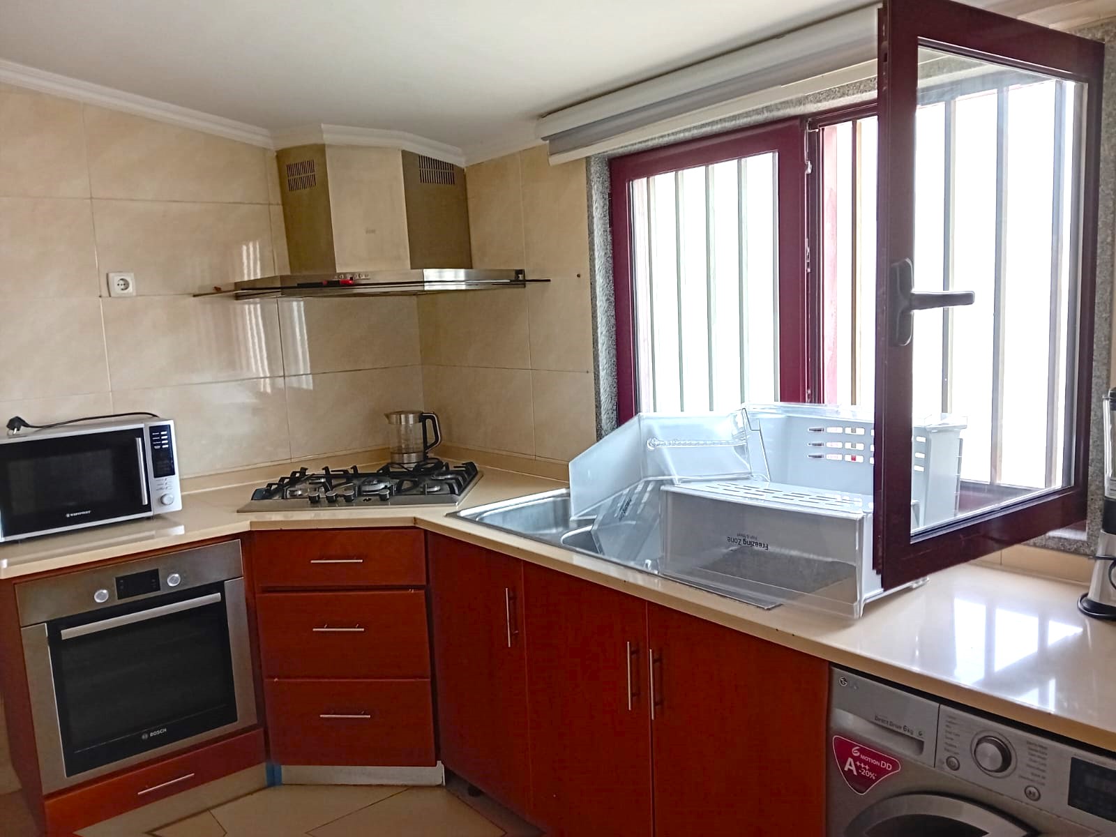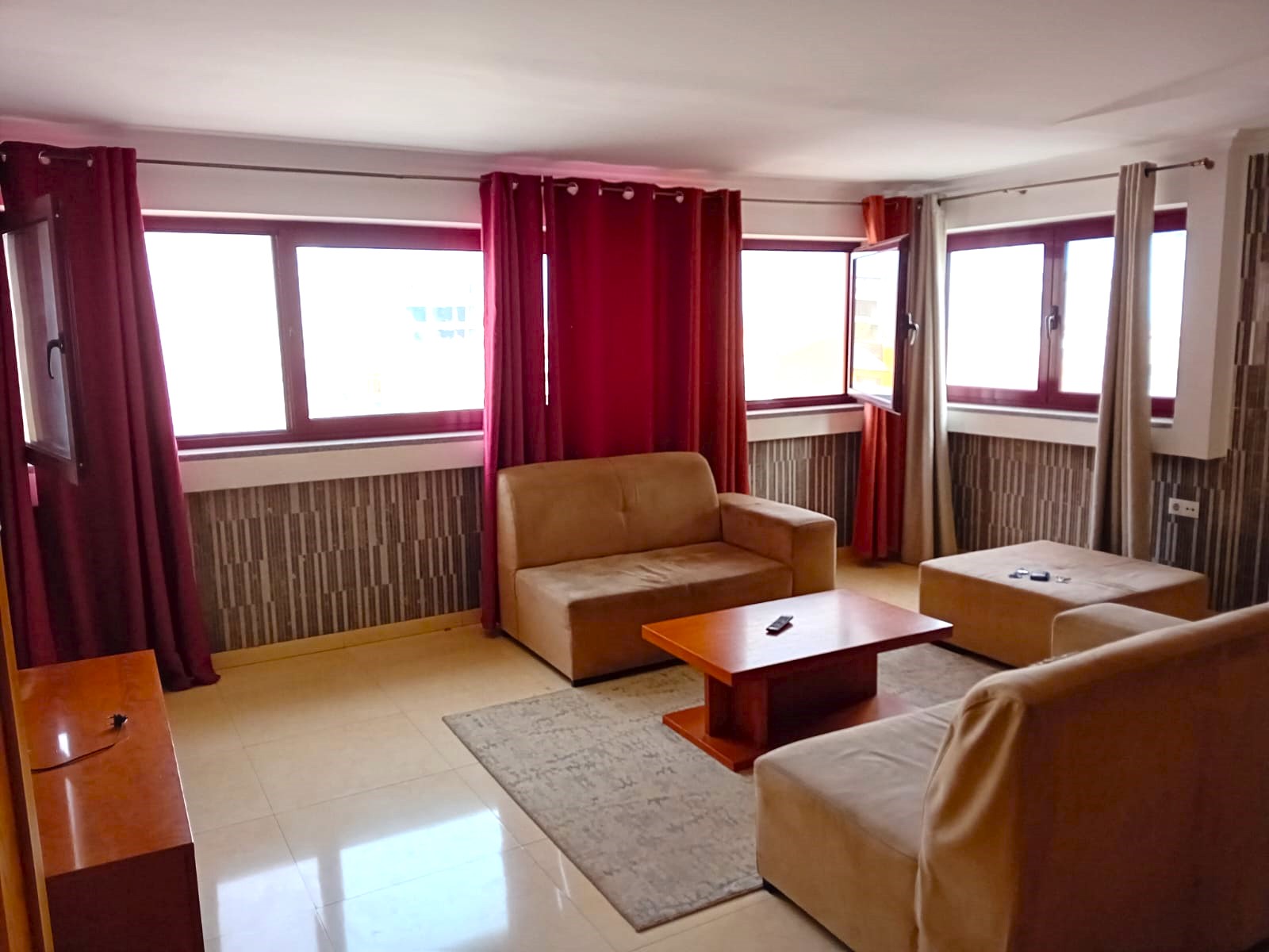 Arrenda.se apartamento T3, perto de enacol, composto por sala comum, cozinha com fogão, forno, exaustor, micro-onda, frigorifico e todos os utensílios básico, Uma suite com roupeiro, dois quartos com roupeiro e uma casa de banho Características: • Bancada em Pedra (Cozinha) • Exaustor • Fogão e Forno • Frigorífico • Guarda Roupa • Intercomunicador • Maquina de Lavar Roupas • Microonda • Mobilado • Pré-Instalação de A/C • Televisão • Termoacumulador