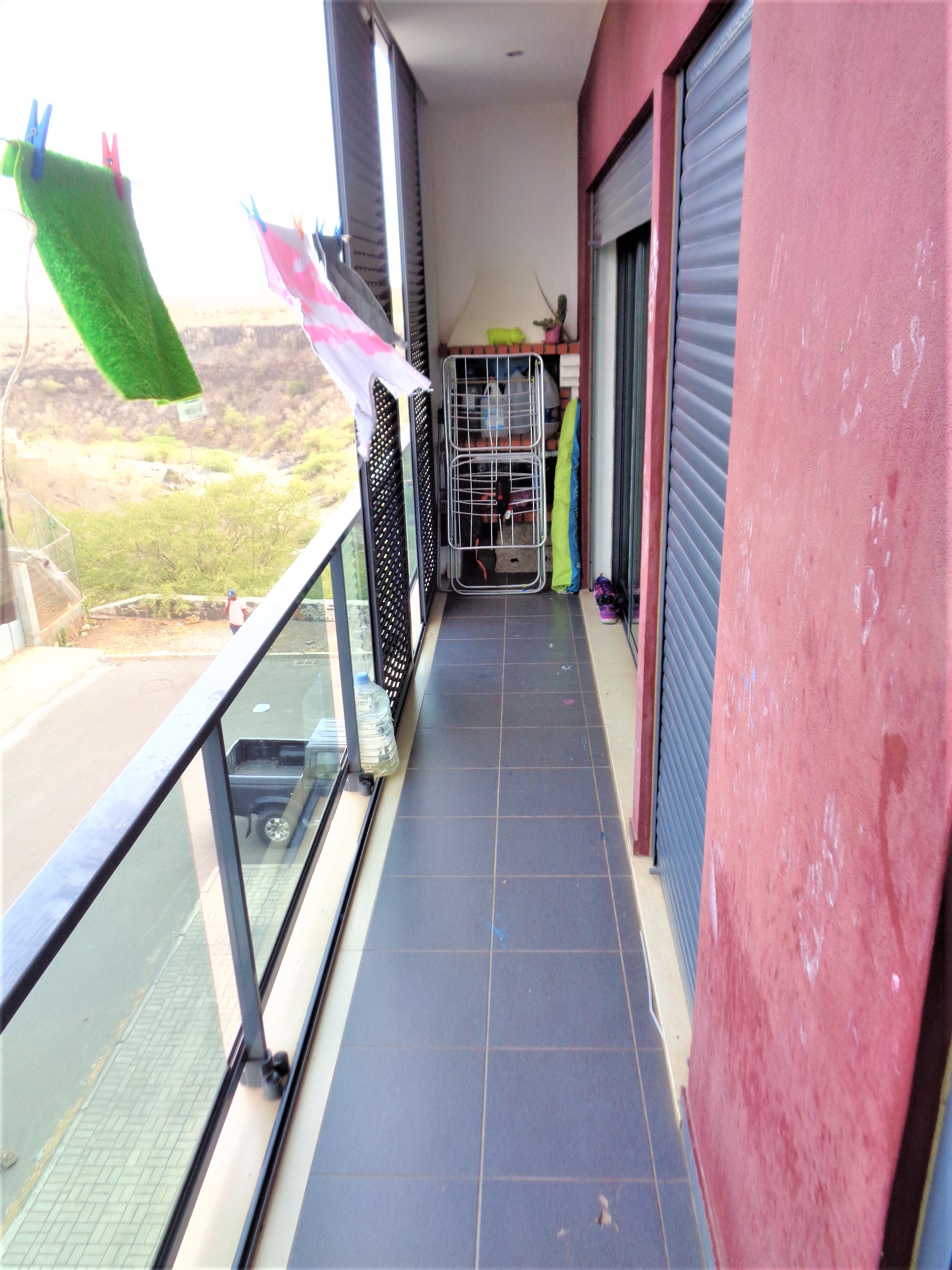 Arrenda-se um excelente apartamento T3 com muita luz em Palmarejo Grande. Apartamento este composto por: Uma sala comum ampla com ar condicionado; Um suite com ar condicionado e roupeiro; Dois quartos com roupeiros; Uma Cozinha equipada com forno, fogão, exaustor, termo acumulador e despensa; Uma varanda com barbecue; Um WC; Garagem; Obs: Edifício com gerador e elevador. E todos os compartimentos do apartamento com estores eléctricos e piso flutuante. Características: • AC • Barbecue • Elevador • Exaustor • Fogão e Forno • Guarda Roupa • Maquina de Lavar Loiça • Maquina de Lavar Roupas • Varanda