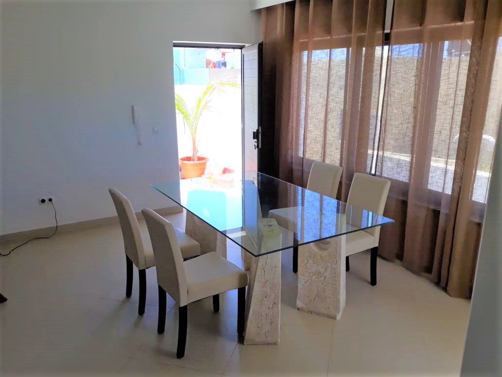 Arrenda-se um excelente apartamento T3, com uma boa localização, numa das zonas mais nobre da Cidade da Praia, composto por: Um salão amplo com varanda grande; Cozinha equipado com fogão, forno, exaustor, micro-ondas, maquinas de lavar roupa e frigorífico; Uma suite com roupeiro; Dois quartos, sendo um dos quartos com roupeiro; Uma copa Uma casa de banho Características: • Bancada em Pedra (Cozinha) • Exaustor • Fogão e Forno • Guarda Roupa • Intercomunicador • Lavatório Duplo • Maquina de Lavar Roupas • Microonda • Mobilado • Tecto Falso • Televisão • Termoacumulador • Varanda